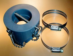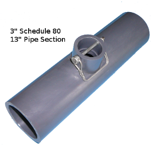 These adapters mount directly onto your existing plumbing. The adapter and pipe are cleaned and coated with either PVC cement or silicon sealer. Then, to secure the adapter to the pipe, the included stainless steel hose clamps are installed. Next, using the adapter as a guide, a 1½” hole saw(not included) is used to bore a hole through the pipe. Adapters to accommodate schedule 40 and schedule 80 pipe are normal stocking items. Other pipes will require a custom-machined adapter. (See section below)
